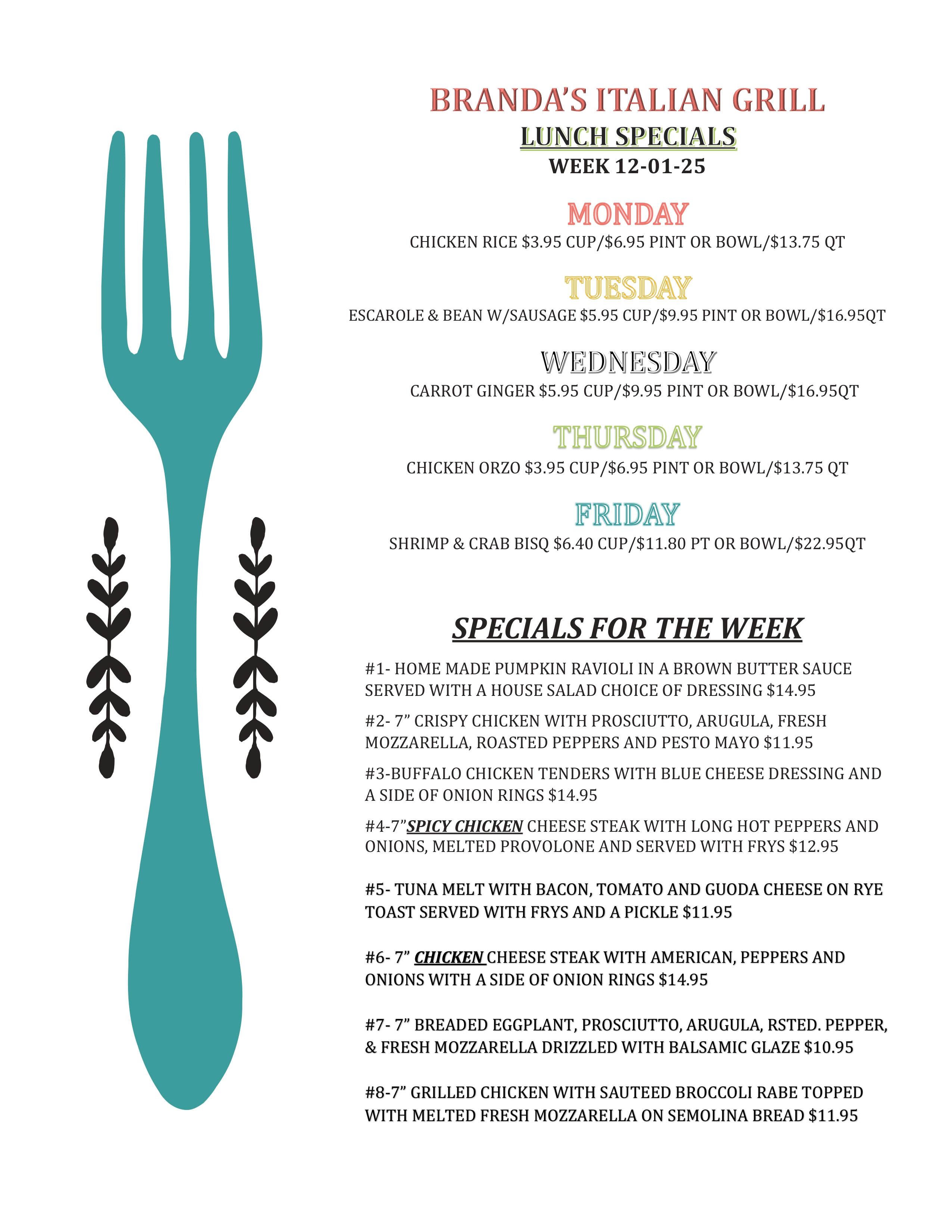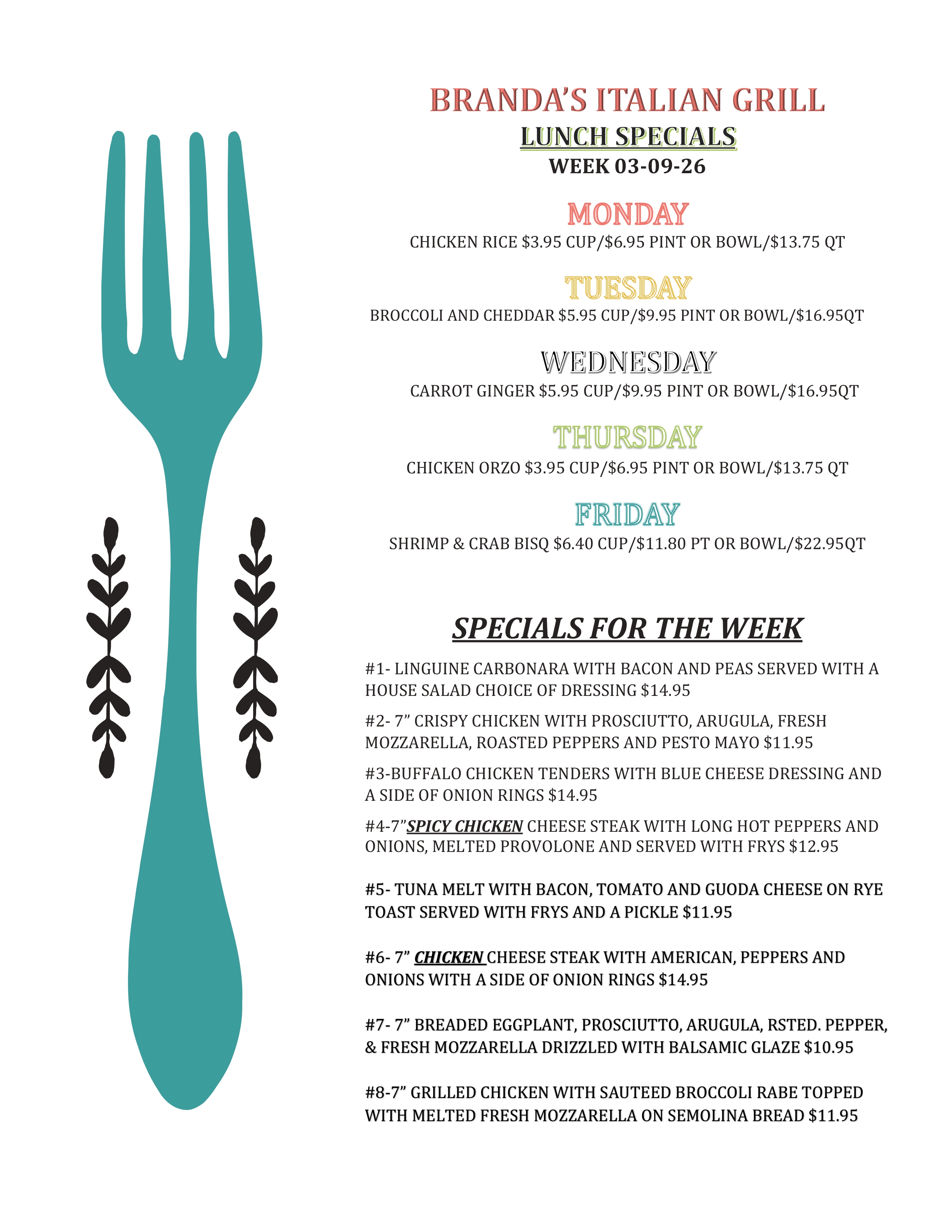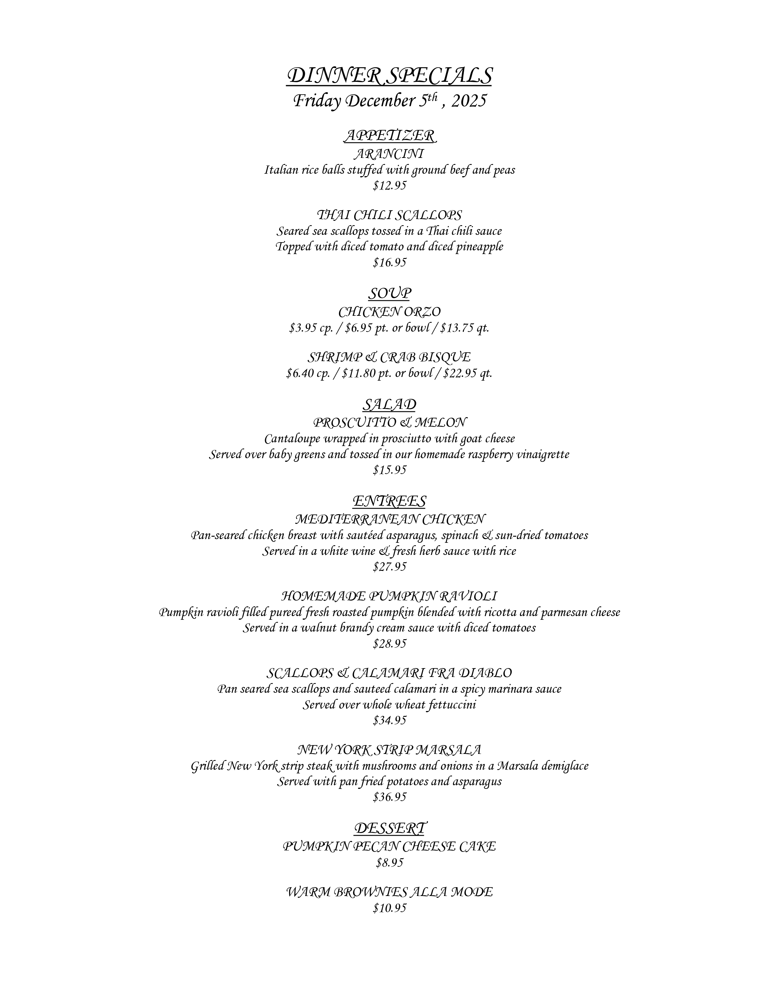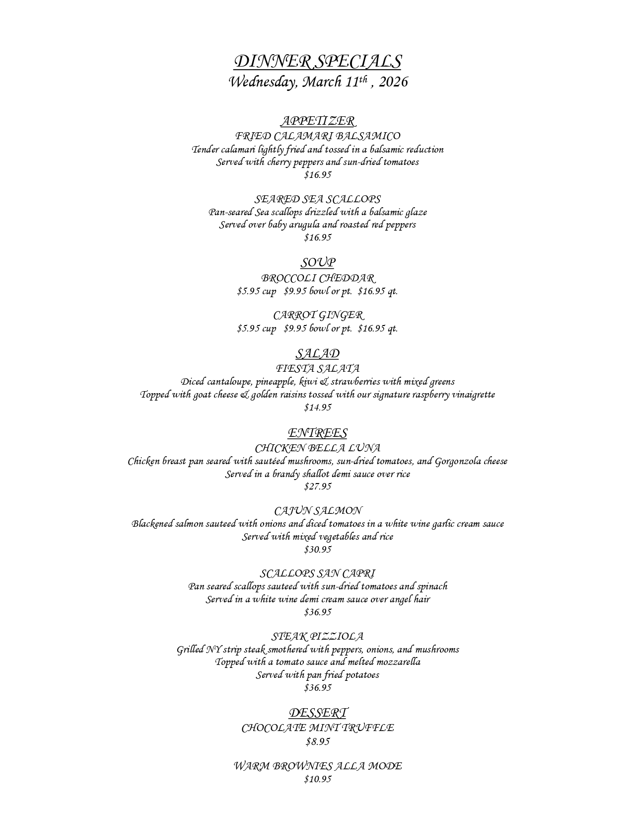 1/2 Off Appetizers | Any 1 Appetizer 1/2 price (with Purchase of any Entree) | Dessert and coffee $6.95